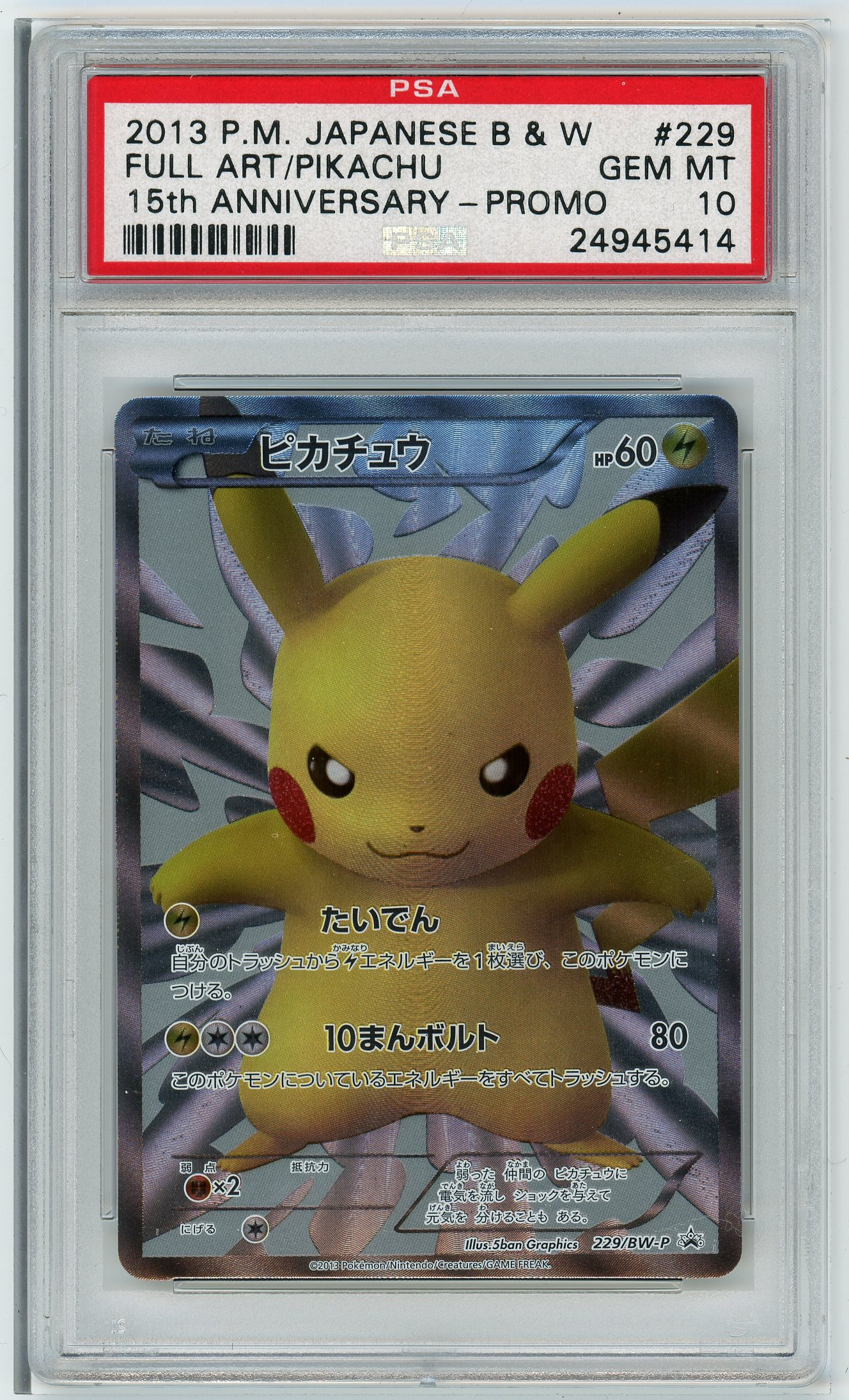 2013 Pokemon Japanese B & W #229 Pikachu Full Art 15th Anniversary Promo PSA 10 GEM MINT