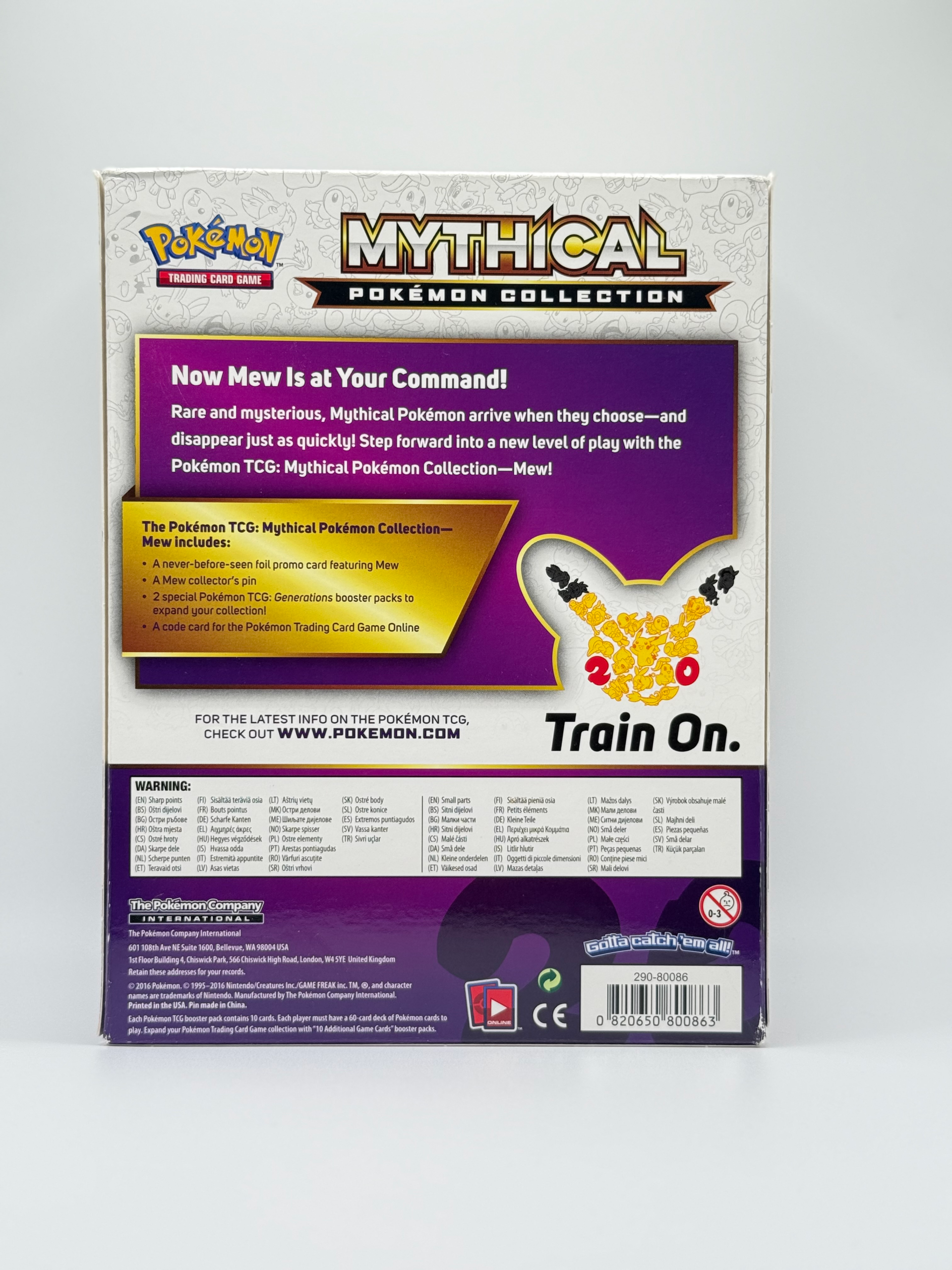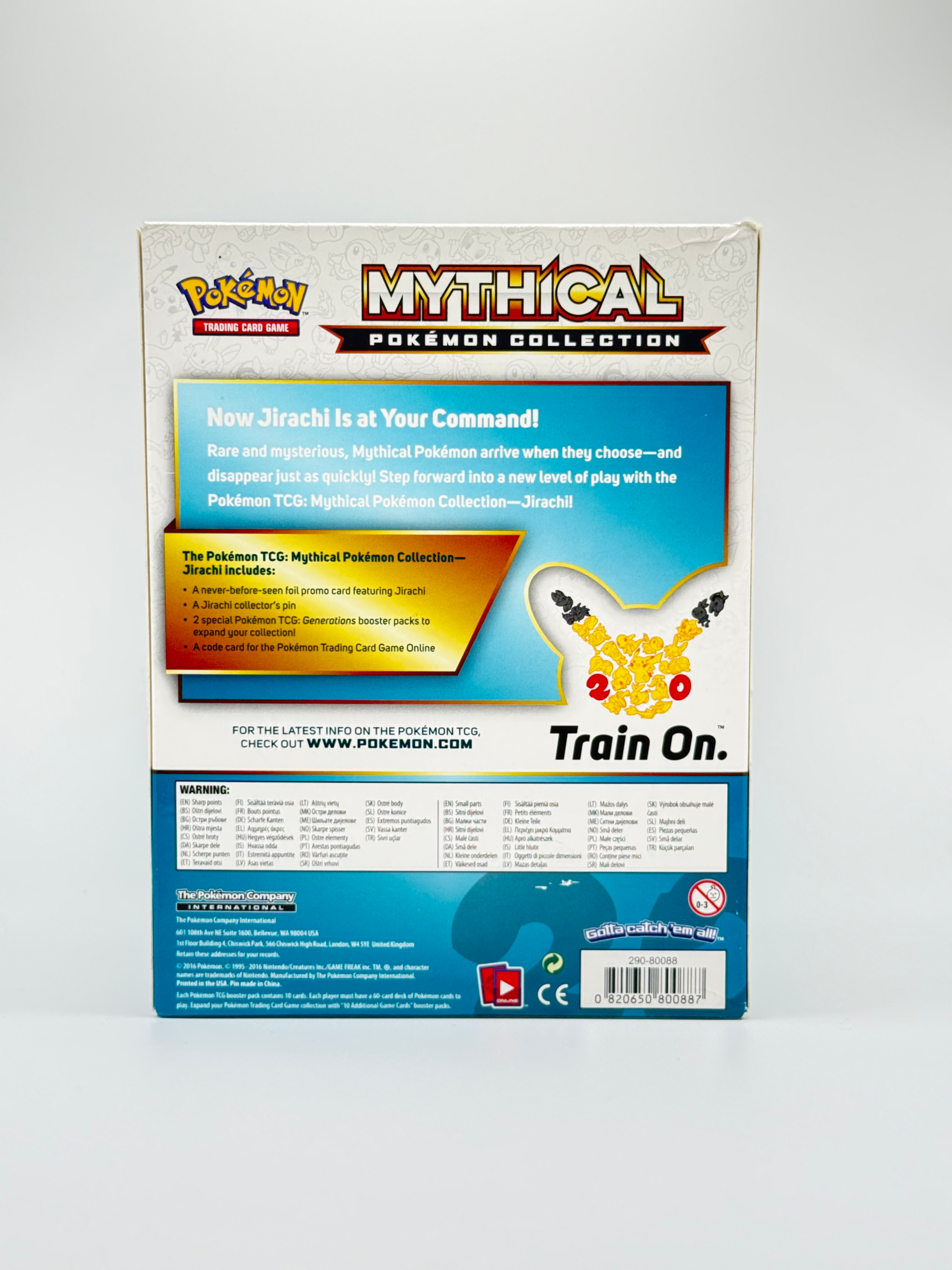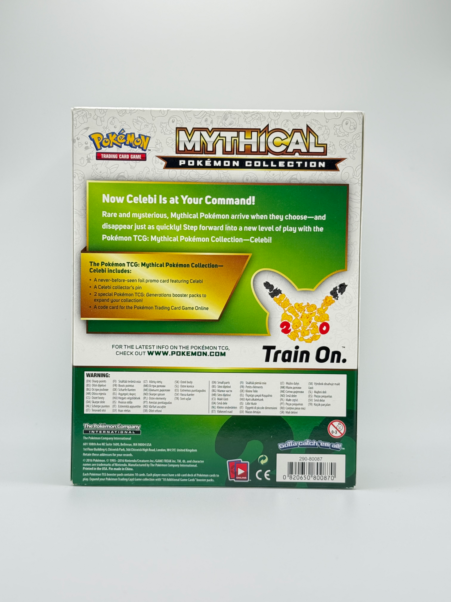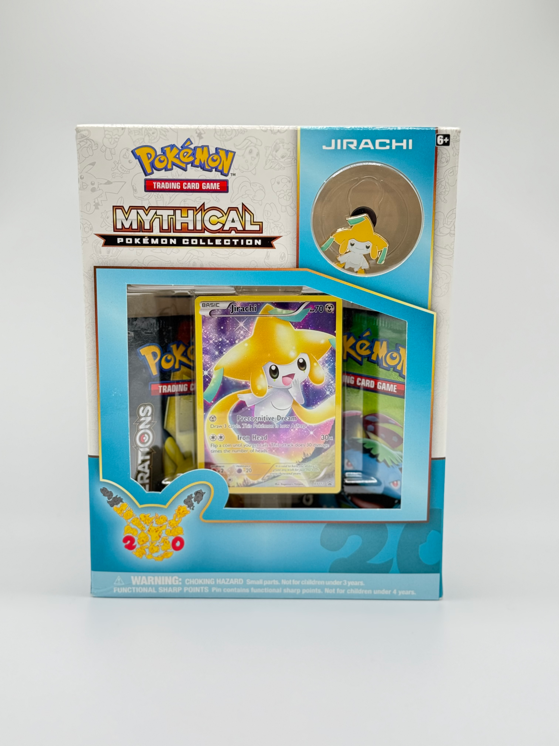 Released throughout Pokémon’s 20th Anniversary celebration in 2016, the Mythical Pokémon Collection features monthly releases dedicated to some of the franchise’s most iconic Mythical Pokémon. Each box includes a stunning full-art Black Star Promo, a collectible enamel pin, and two exclusive Generations booster packs—one of the most celebrated sets of the XY era.