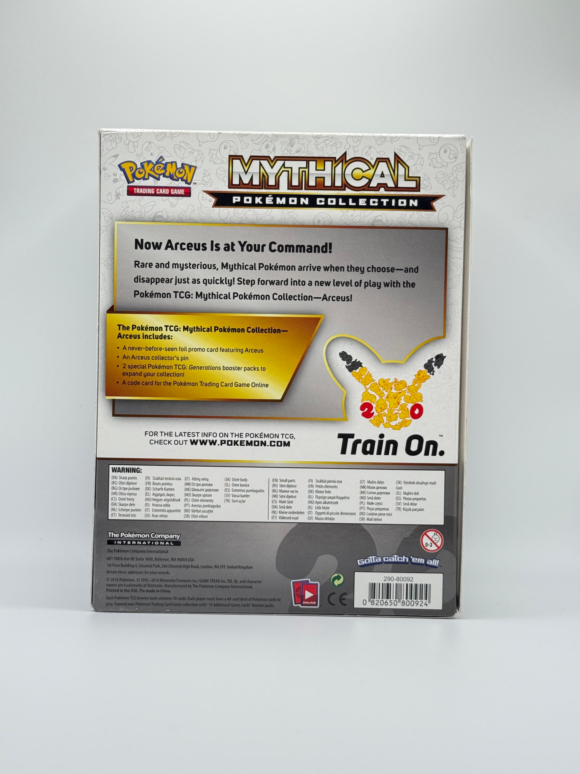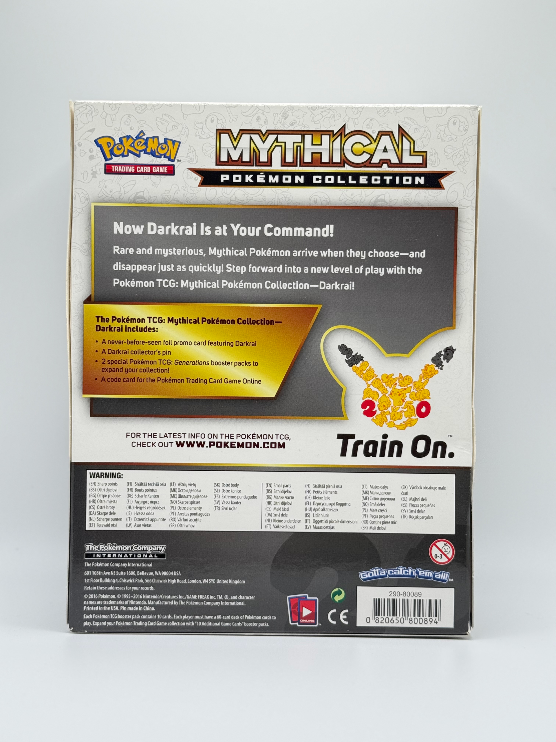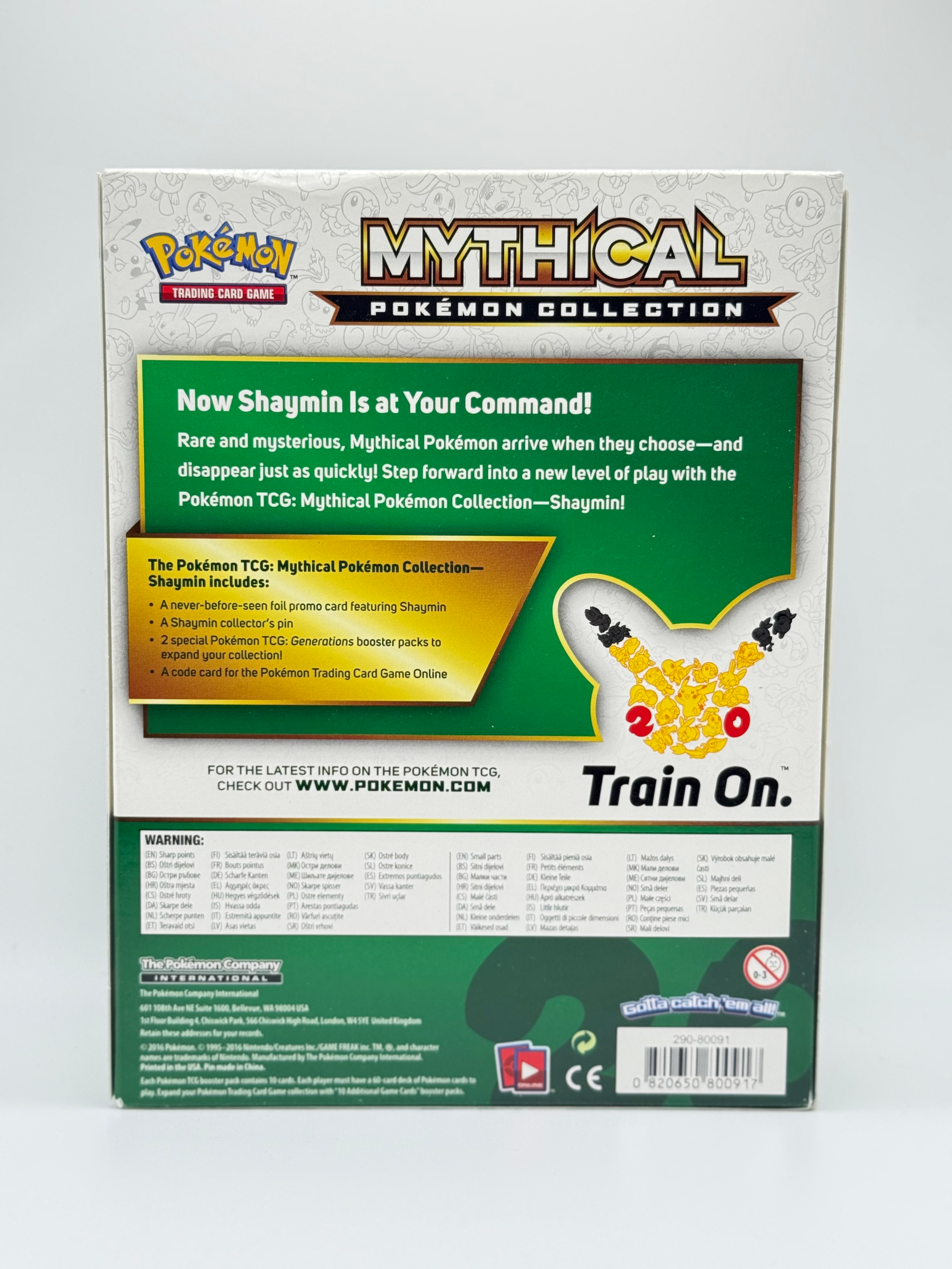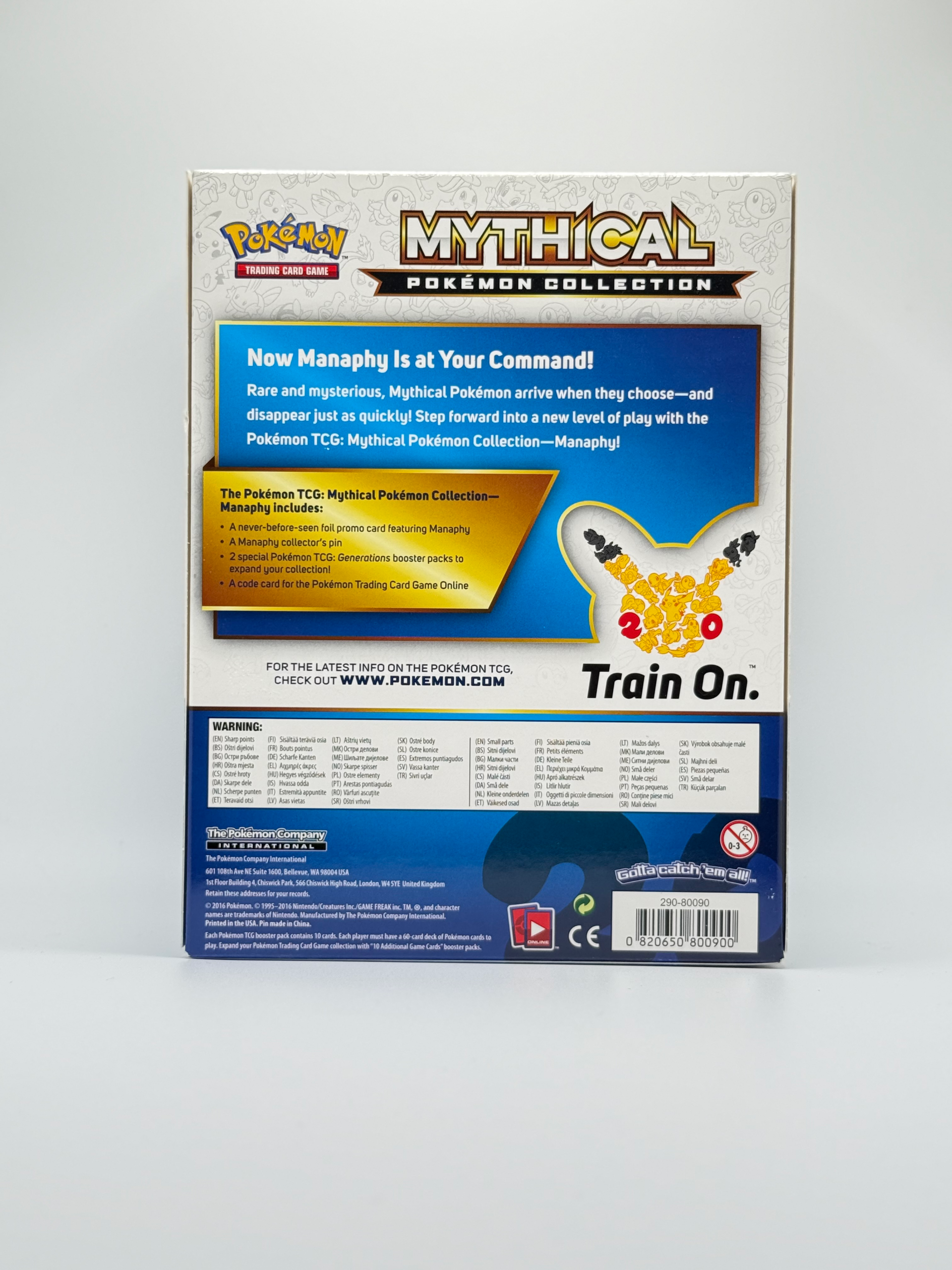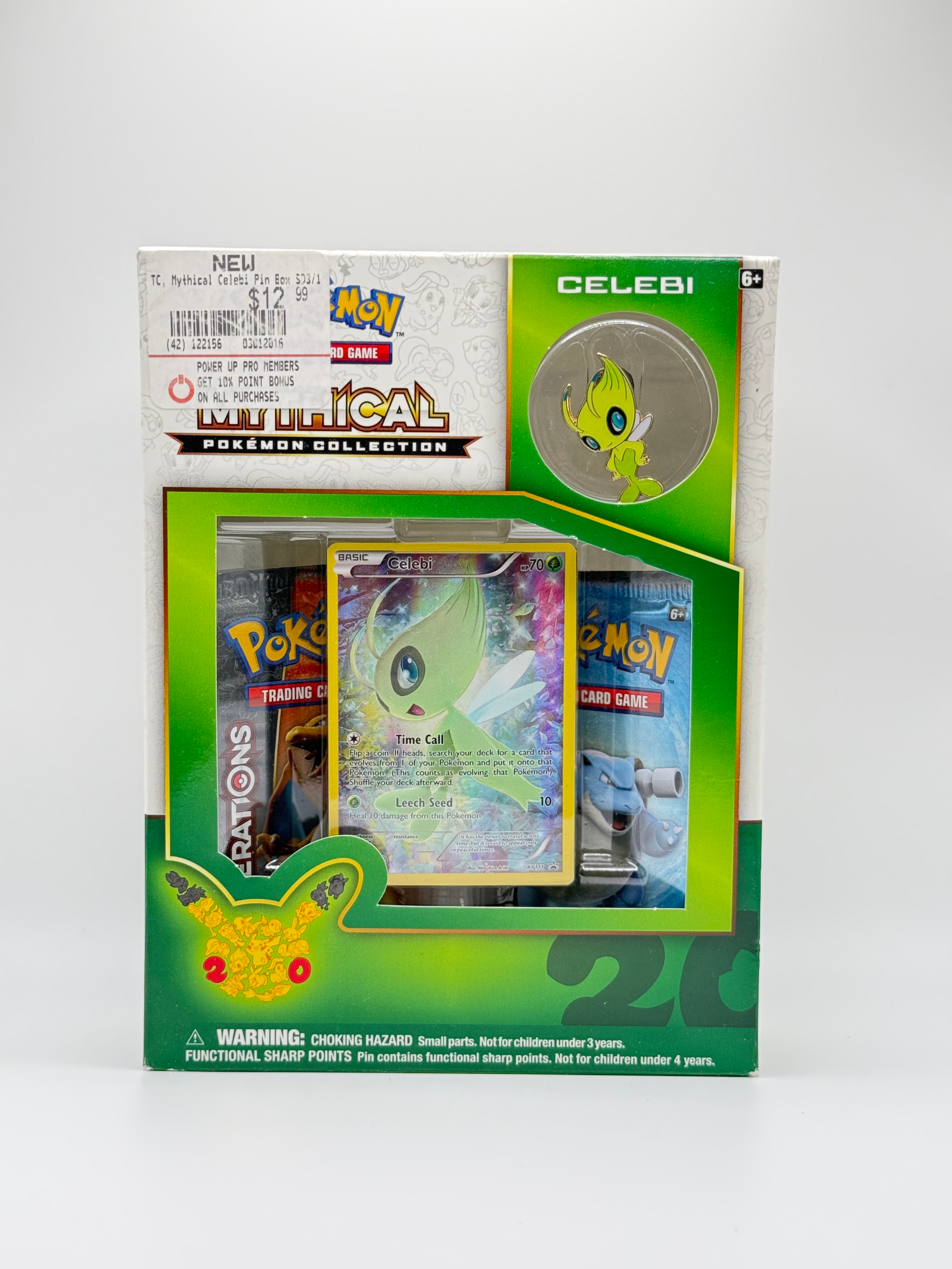 Released throughout Pokémon’s 20th Anniversary celebration in 2016, the Mythical Pokémon Collection features monthly releases dedicated to some of the franchise’s most iconic Mythical Pokémon. Each box includes a stunning full-art Black Star Promo, a collectible enamel pin, and two exclusive Generations booster packs—one of the most celebrated sets of the XY era.