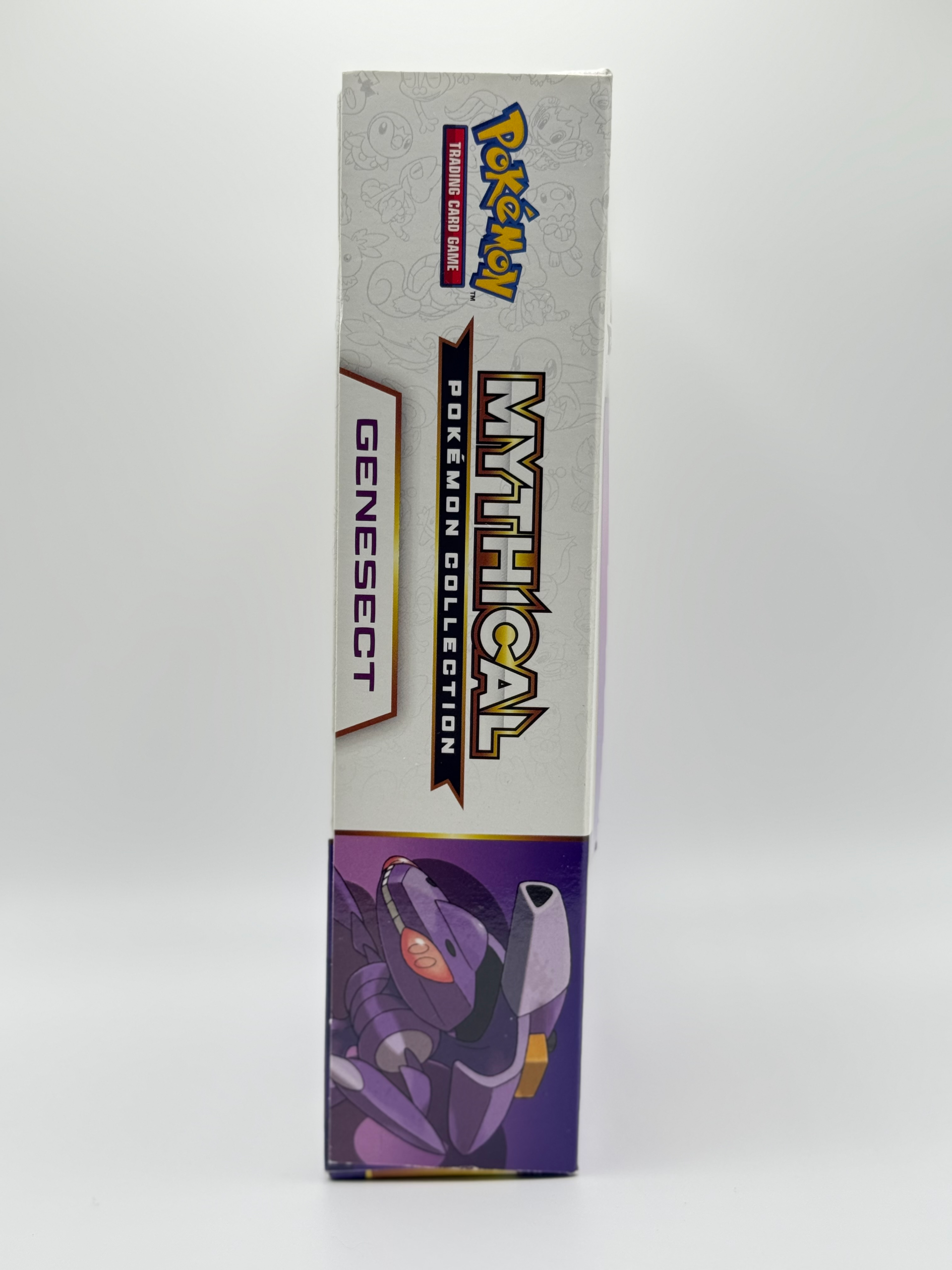 A metallic, futuristic-themed box with a purple-and-steel-tone full-art promo. The Genesect pin highlights its cybernetic appearance. Collectors love this box for its edgier aesthetic and its strong representation of the Unova Mythicals.
