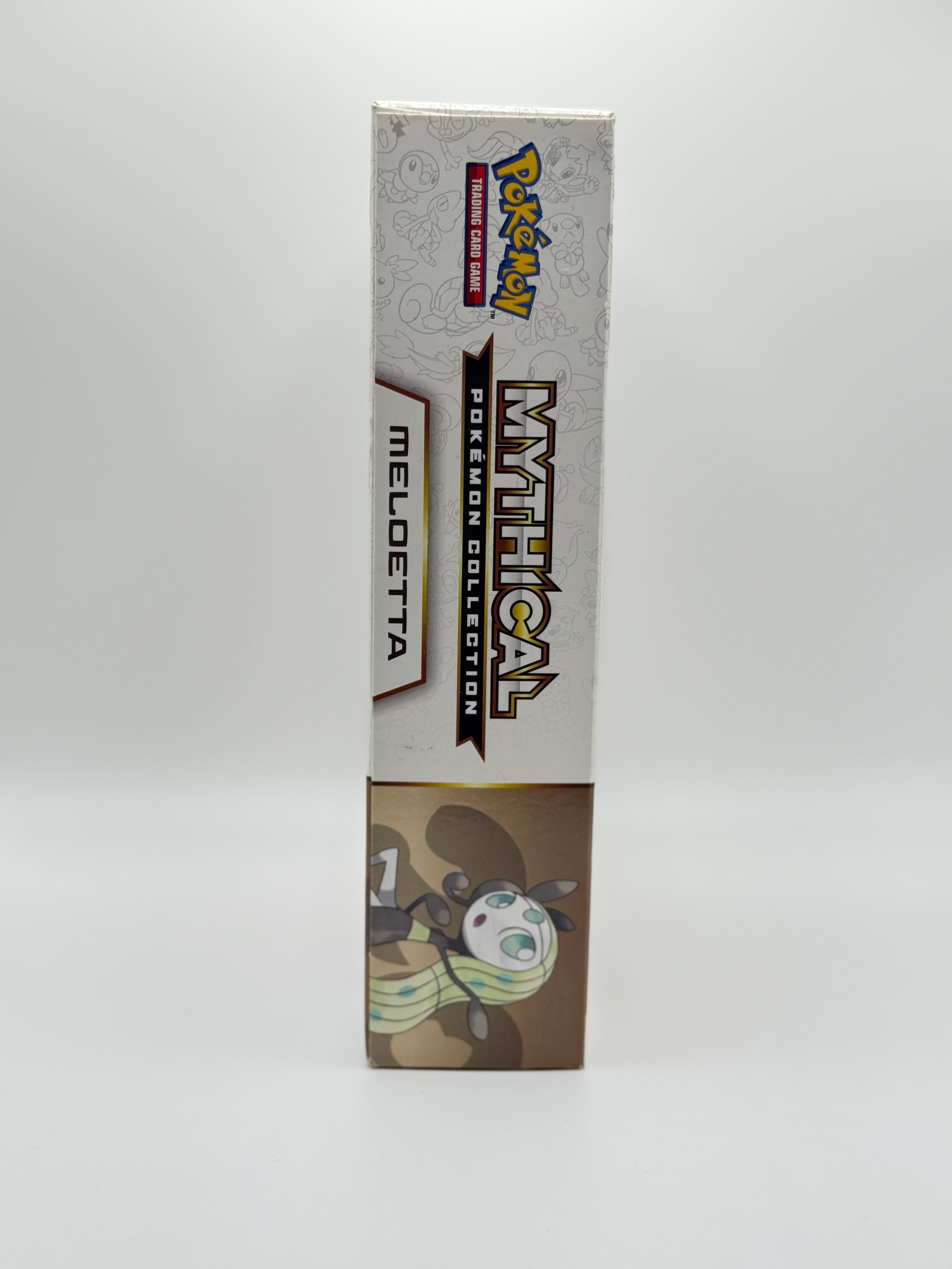 The final release of the Mythical lineup, with a beautiful full-art promo featuring Meloetta’s Aria Forme surrounded by musical notes and soft pastel colors. The pin captures its elegant, melodic theme. A graceful finishing piece for anyone building the full anniversary set.