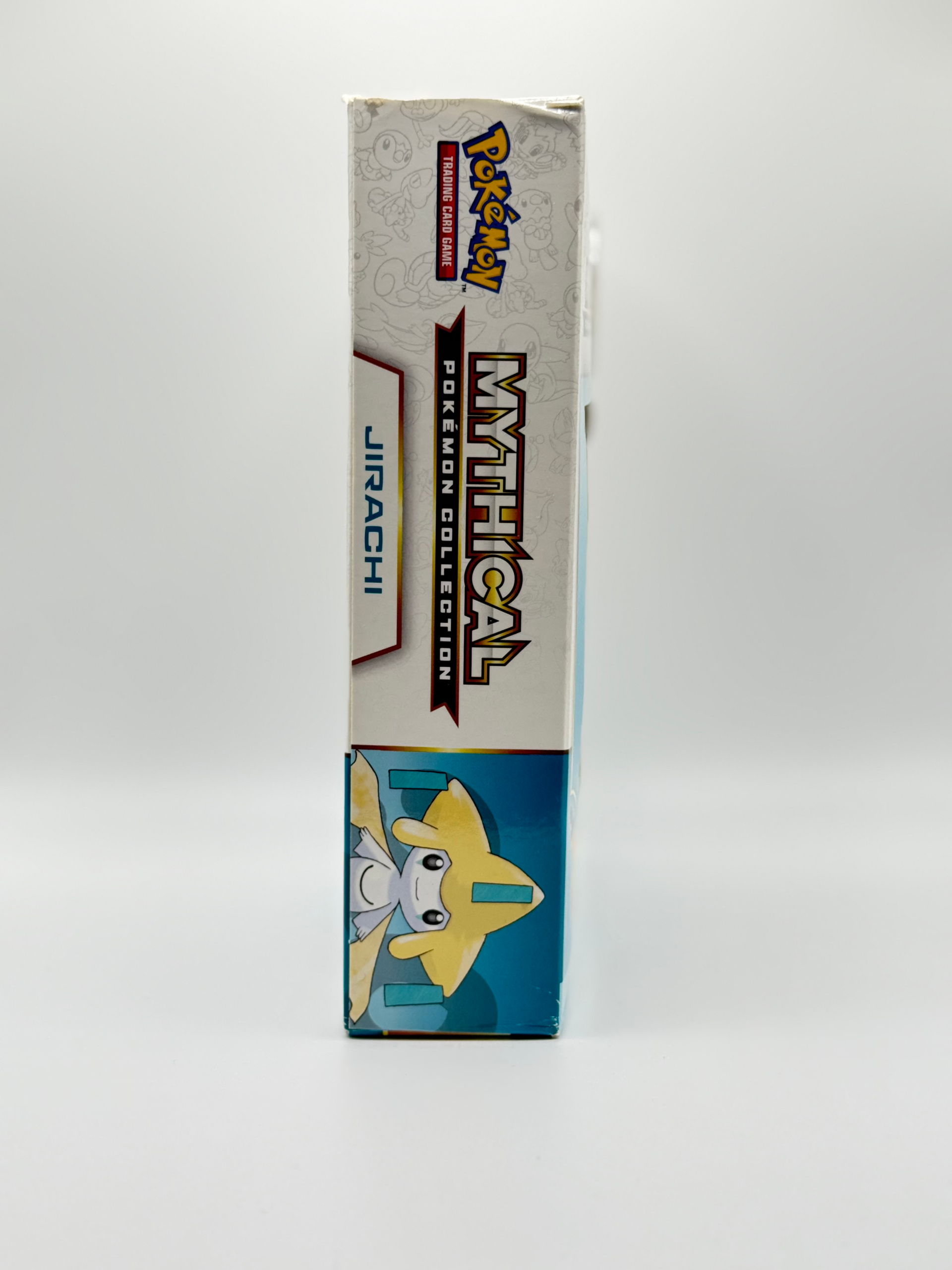 The Jirachi Collection features a calm, serene full-art promo with pastel blues and yellows, emphasizing Jirachi’s wish-granting theme. The pin has a soft chibi stature that fans love. A favorite among collectors who appreciate clean card art and softer color tones.