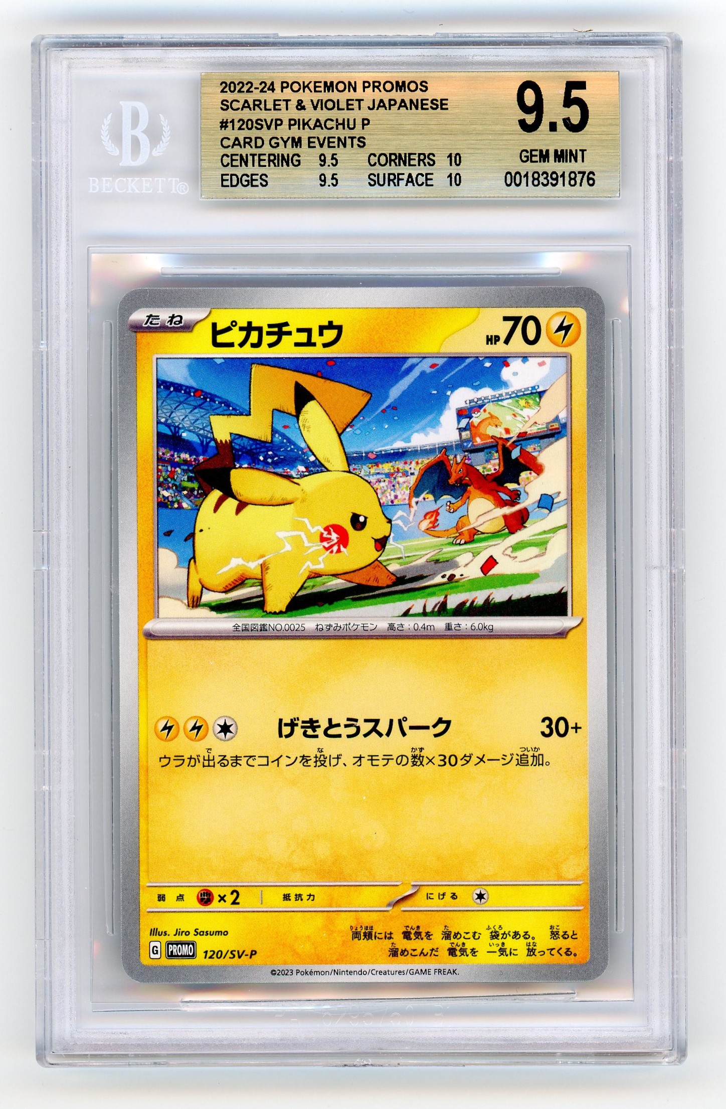 Pokemon Pikachu 120/SV‑P Gym Event Promo BGS 9.5 GEM MINT